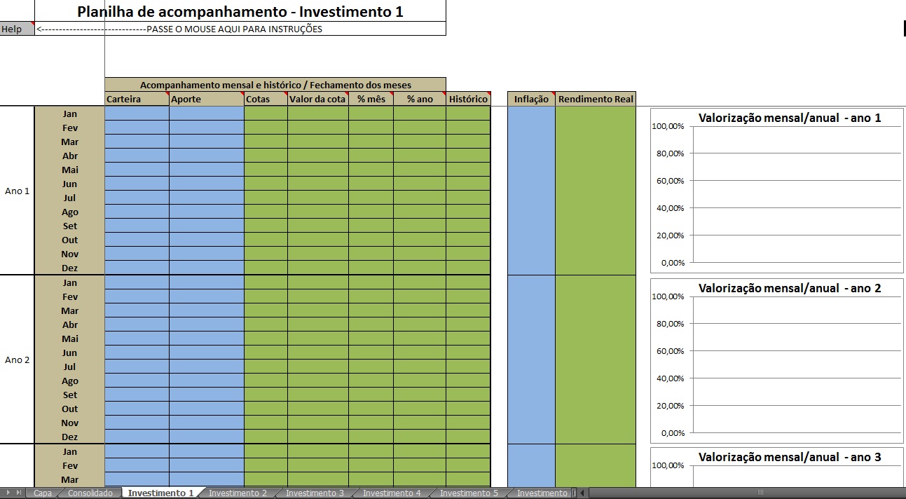 o preenchimento é mais fácil ainda. É só seguir preenchendo mês a mês o valor do aporte e o valor da carteira.