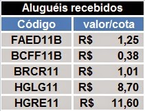 Aluguéis recebidos: